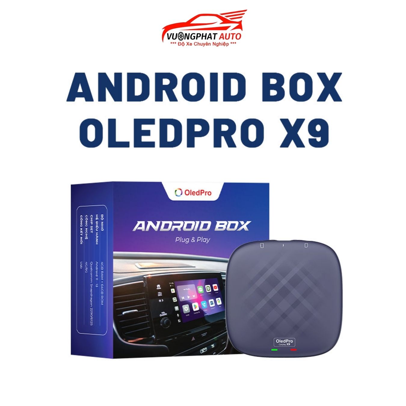 VƯỢNG PHÁT AUTO là đơn vị chuyên phân phối và lắp Android Box OledPro X9 tại Việt Nam. Chúng tôi là đại lý lớn hàng đầu của hãng OledPro tại Việt Nam nên sản phẩm được cam kết chính hãng 100%, chất lượng đạt chuẩn, bảo hành đầy đủ.